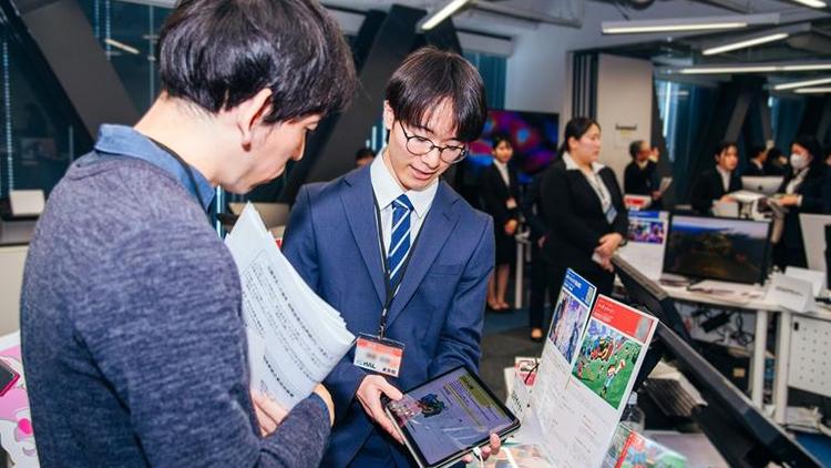 企業から招いた人事・制作担当者に対して、学生たちが直接作品をアピールできる独自のカリキュラムは、指名採用のきっかけとなります。各校舎での対面形式のほか、オンラインでも開催。全国の企業とコンタクトをとることが可能です。 2025年度は2,153名の人事・制作担当者がオンラインで作品を評価しました。 ※HAL大阪・HAL東京・HAL名古屋の実績