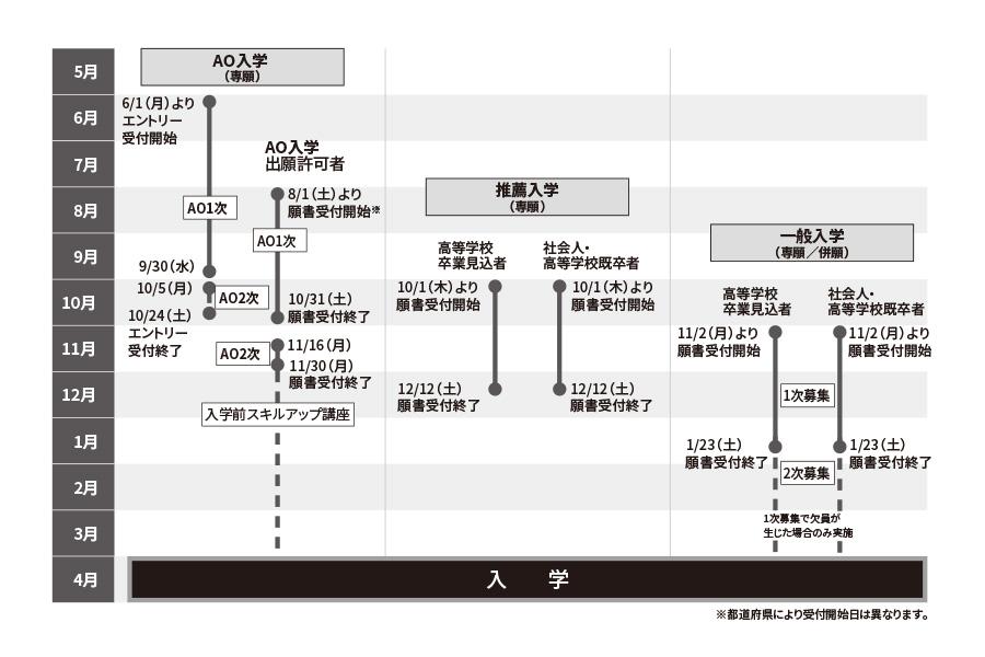 【昼間部】募集学科・入学区分・スケジュール(一部抜粋)