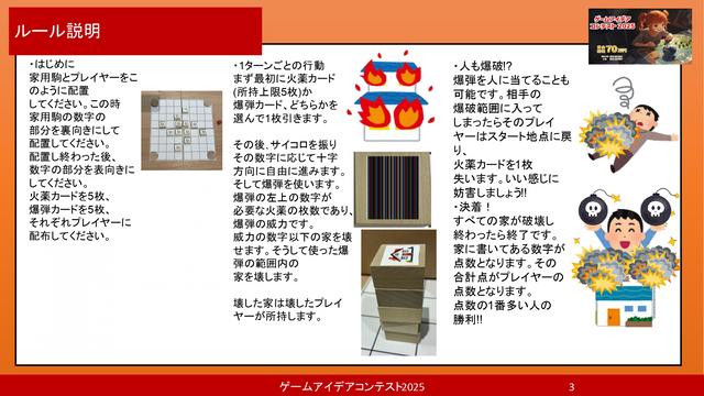 ストーリー設定としてみんなが納得して、爽快感があって、今の時代でも受け入れられるゲームだと素敵です。ファンタジーなのか、爆破によって何かを処理する社会貢献なのか……?世界観設定を悔いなく作って、ゲームバランスを面白くしたら、充分商品化を目指せると思います!