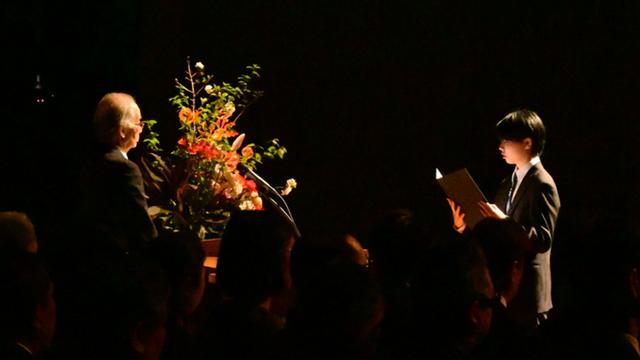式では校長や来賓の日本マイクロソフトからの挨拶と、在校生からのメッセージが新入生に向けて贈られ、それに応えるように新入生代表の学生から入学の詞が述べられました。